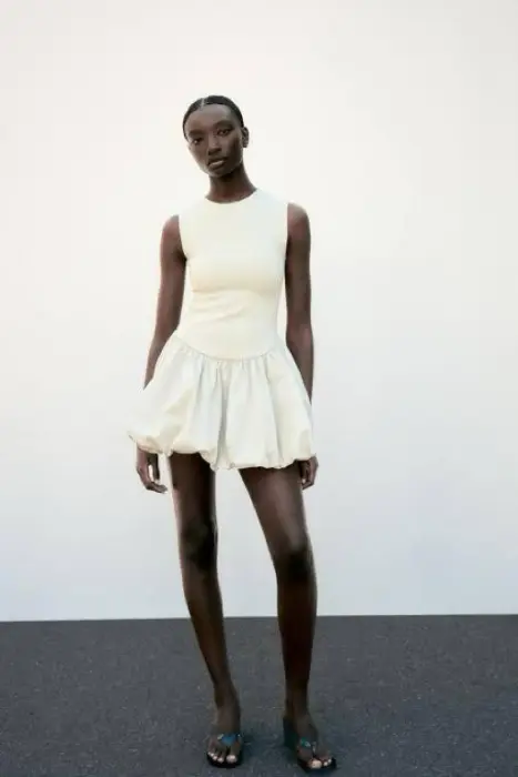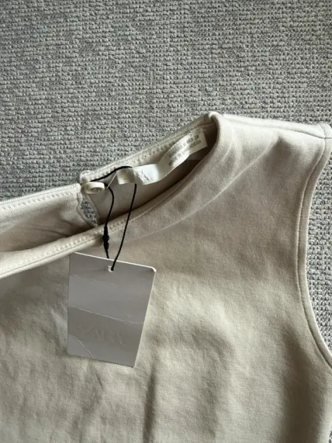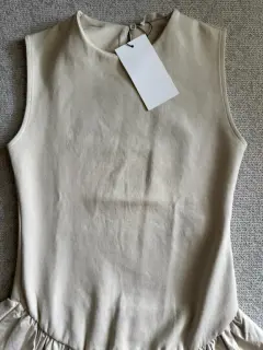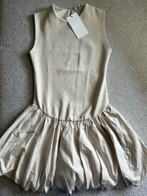 Vestido Beige tipo Globo. Nuevo con etiquetas!! Vestido elástico con falda tipo globo Talla 28 (M)