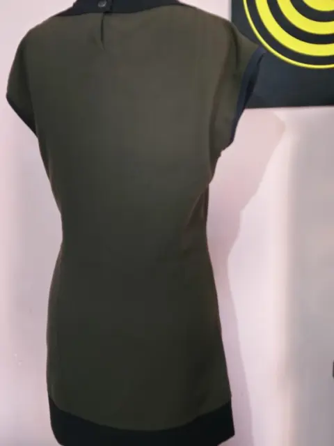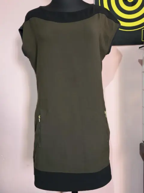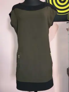 Vestido color verde con negro, bolsas no funcionales, ningún detalle poco uso, largo 85cm, da entre talla 30-32 mx no estira, axila a axila mide 47cm