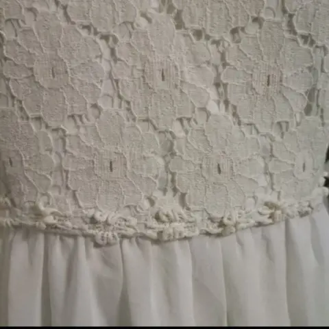 Vestido blanco estilo romántico. Vestido estilo romántico blanco talla 9 pero biene reducido queda más a talla 7 CHECA LAS MEDIDAS en perfecto estado sin ningún detalle sus medidas son de axila a axila 41 cm largo 86 cm cintura 37 cm..