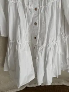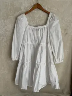 Color blanco Talla LMaterial algodón DescripciónVestido corte holgado tipo holanes , color base blanco, mangas 3/4,con resorte al final , cuello cuadrado, tres botones Estado Usado una vez Precio 400 Medidas en centímetros Ancho hombros 36 cmCuello cuadrado24 cm Escote medio 20 cm Busto 49cmLargo 81 cm Mangas 3/4 51 cm con resorte al final Sin Cintura marcada