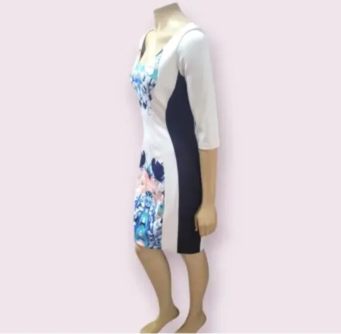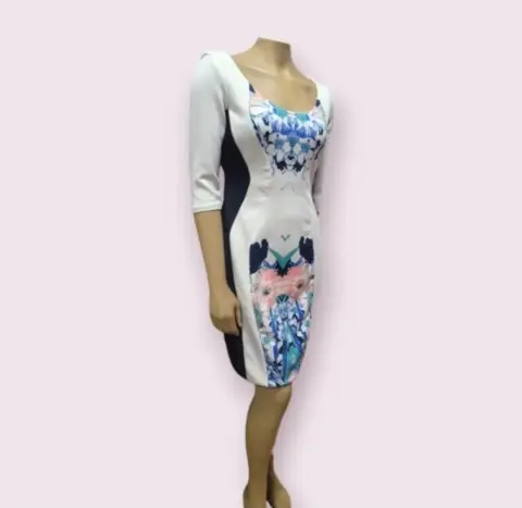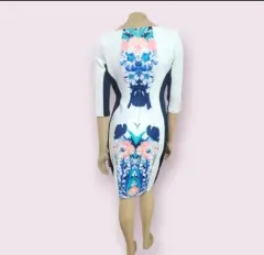Vestido Casual Sangria💖. Vestido Casual Sangria💖, talla 6, colores blanco y negro con acentos florales, cuello redondo, manga 3/4, estilo lapiz, cae a larodilla, cierre completo en la parte de atras, forrado por dentro, hecho de poliéster y espandex, mide 38cm de hombro a hombro, 42cm de axila a axila, 34cm de cintura 44cm de cadera con 97cm de largo del hombro hacia abajo en buen estado cosmetico.