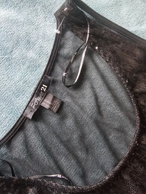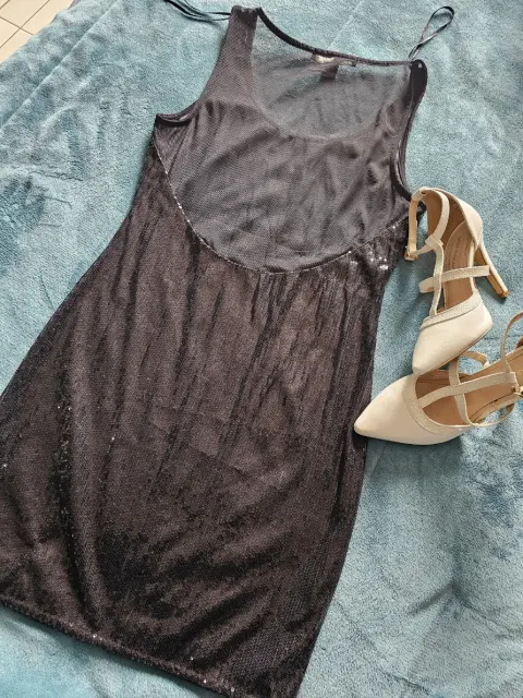 Nuevo sin etiqueta; nunca se usó, sin detalles.Negro con brillos entallado dice M considero queda mejor a S; espalda semidescubierta con tela de malla