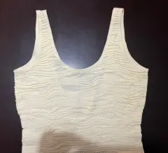 Vestido color beige con textura. Bonito vestido corto en color beige, con textura talla S-MCon medida de axila a axila de 45 cmY estiraDe largo mide 85 cm desde el hombro