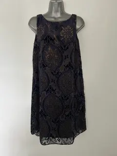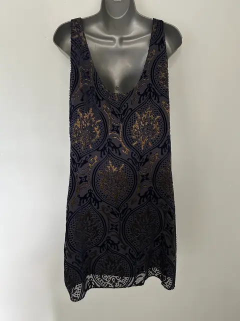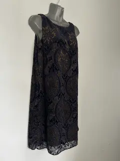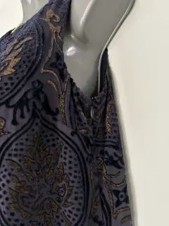 Vestido con terciopelo. Bonito vestido azul con dorado, cierre en un costado Medidas aproximadas De axila a axila 46 cm Largo 91 cm