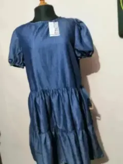 Vestido corte A mezclilla ligera. La tela es tipo mezclilla super ligera, se entrega con el cinto que se puede ajustar como se necesite, viene amplio da entre talla 34 - 36 mide 57 CM axila a axila y largo 97cm
