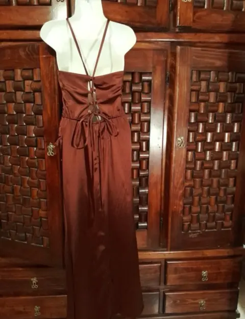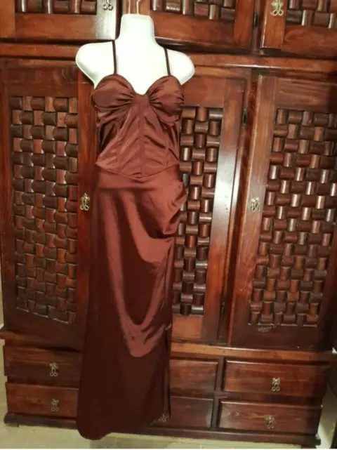 Vestido corte sirena en color vino, amolda súper bonito y se ajusta por la parte de atrás en modo corset es tela satin unitalla 32-34 en perfecto estado 🧜♀️💕