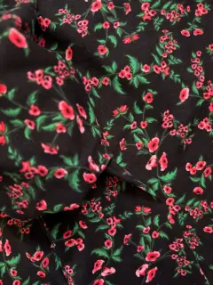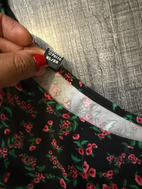 Vestido de flores Muy fresco Con una manga y otra descubierta Talla EG/XG Suavecito 46 cm de axila a axila 92 cm de largo Negro con color rojo de las flores y verde Está muy lindo