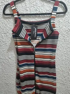 Hermoso vestido de tirantes corto con cierre al frente lo puedes ajustar a tu gusto se ajusta al cuerpo muy padretalla S/M