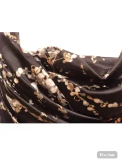 Hermoso vestido negro con estampado en flores, diseño en pliegues, escote cuadrado al frente y en "v" en la espalda, perfecto para un cóctel o fiesta en jardínTalla 6 con las siguientes medidas:Ancho axila 43 cmsLargo desde axila (65 cms)PRENDA EN EXCELENTES CONDICIONES YA QUE SÓLO TUVO UNA PUESTA