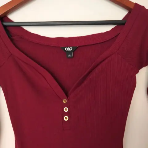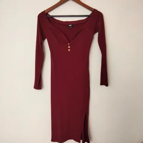 Vestido color vino, manga larga y delicado escote. Talla M (7) Marca Guess Nuevo sin etiquetas