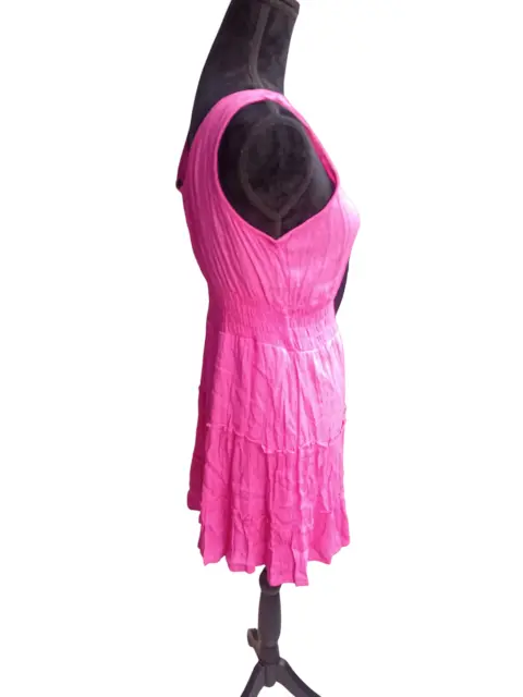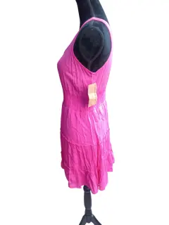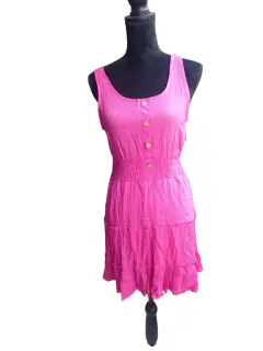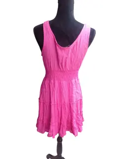 VESTIDO FRESCO, MARCA VERTICHE, CON RESORTE EN LA CINTURA, IDEAL PARA PRIMAVERA, COLOR FIUSHA, UNITALLA (QUEDA HASTA L) MIDE HOMBRO A HOMBRO 28 CM, AXILA A AXILA 45 CM,CINTURA SIN ESTIRAR 78 CM, LARGO 83 CM