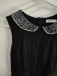 Vestido negro de encaje con forro, tiene detalle en el cuerllo decorado con Brillos plateados y negros.Es perfecto para cualquier ocasiòn y deslumbrar con tu belleza el mundo.Las tallas son juveniles de USA por favor verifica las medidas o si tienes duda preguntanos y te apoyamos