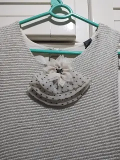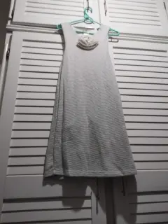 Vestido largo , sin mangas , con adorno en el cuello estilo tejido, con un pequeño detalle jalado