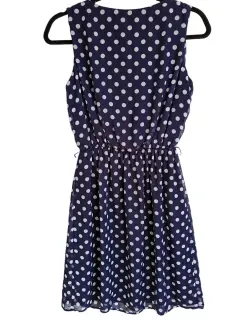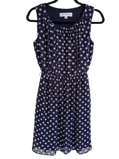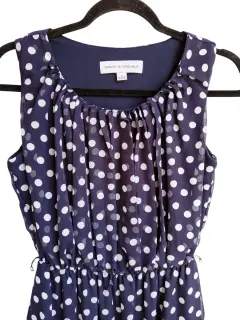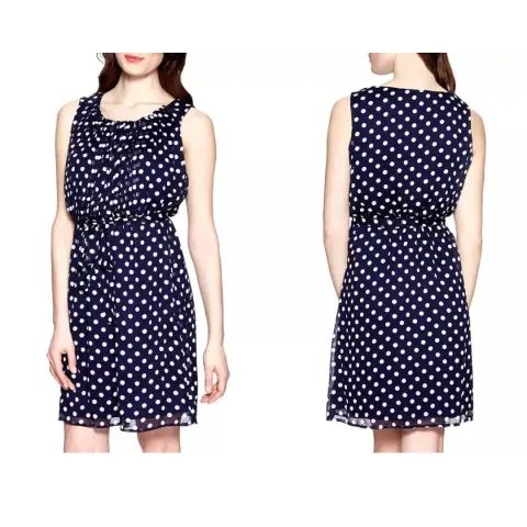 Vestido de lunares EMMA & MICHELE. Vestido de lunares EMMA & MICHELE Vestido sin mangas, no incluye cinto, pliegues en el cuello dan un estilo muy femenino, forrado. Talla 6 Medidas tomadas por un solo lado: *Axila-Axila 45 cm *Cintura 31 CM ( tiene resorte y estira mucho) *Largo 92 cm