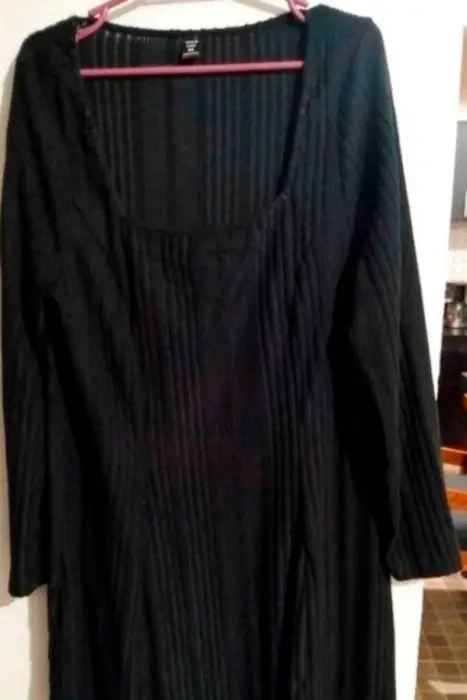 Vestido negro de manga larga con cuello cuadrado 106 cm pecho, 91 cm cintura, 140 cm cadera, 98 cm largo, tela tejida acanañlada elastica,Acepto ofertas