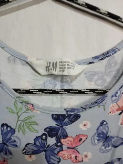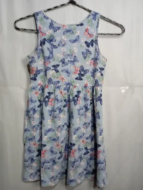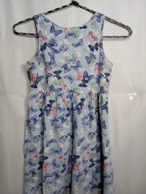 Hermoso vestido azul claro con diseño de mariposas en varios colores marca H&M para niñas de 6-7 años en excelentes condiciones. Arma tus paquetes con nuestras demás prendas, pregunta por los descuentos.