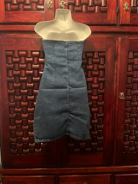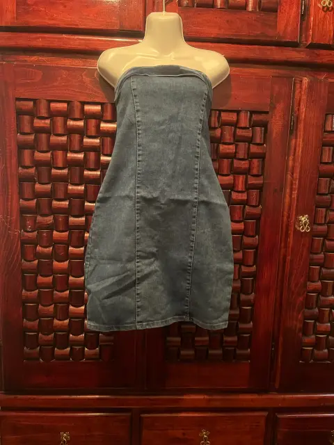 Vestido de mezclilla,strapless es unitalla da de una (28-32) lo recomiendo más para una talla M está nuevo nunca lo usé 💙