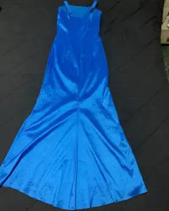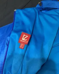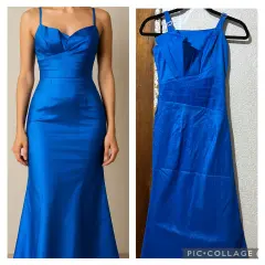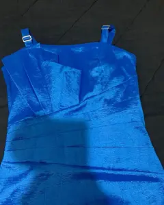 Vestido de noche azul eléctrico. Vestido Liz Minelli talla 5, para tus próximos eventos, con diseño de abanico en el pecho, con fondo, semi nuevo
