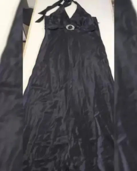 Vestido de Noche Negro Talla XL Largo de Satín con Forro Estilo Halter