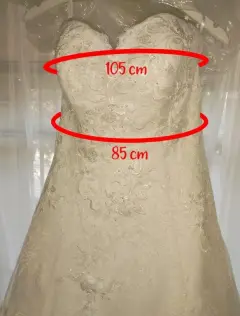 Vestido de novia strapless T14 novias de españa. Vestido de novia talla 14 corte A, usado solo una vez, ya tiene lavado artesanal especial. Ideal para alguien de aproximadamente 160 cm de altura, ya que la tienda lo ajusto a mi medida, con cintillas en la espalda tipo corset, lo que permite ajustarlo a la silueta.🔹 Medidas:Largo delantero (escote a pies): 132 cmLargo trasero (escote espalda a cauda): 202 cmCintura: 85 cm (ajustable de 5 a 8 cm más o menos)Busto: 105 cm (ajustable de 5 a 8 cm más o menos)🔹 Incluye accesorios:Velo largo sencillo (con un pequeño detalle descosido en la cola, fácil de arreglar)Capa extra con escote de hombros, para un toque elegante y versátil.💬 Precio negociable