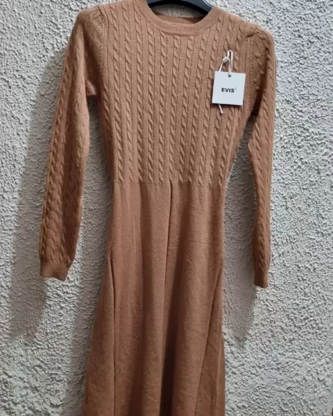Vestido de punto café circular queda abajo de la rodilla talla s/m nuevo sin detalles.