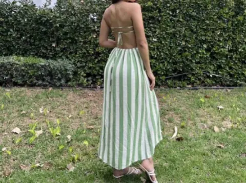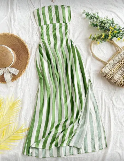 Vestido de verano con espalda descubierta. Vestido largo de verano con rayas, espalda descubierta y strapless. Nuevo sin etiqueta