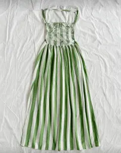 Vestido largo de verano con rayas, espalda descubierta y strapless. Nuevo sin etiqueta