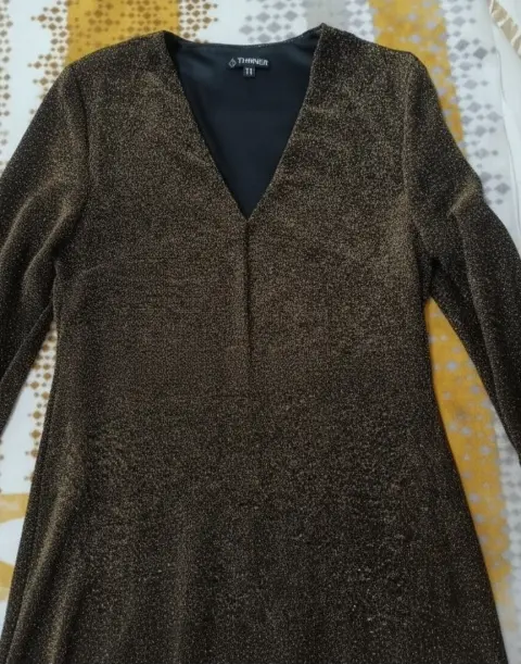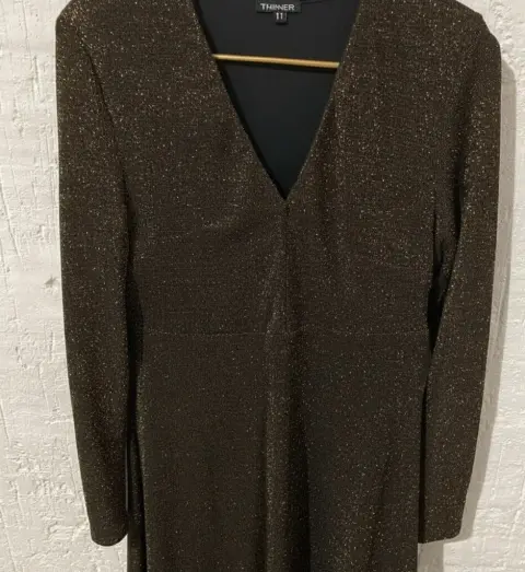 Vestido dorado de noche. Vestido seminuevo bonito para lucirse de noche, llega centímetros por arriba de la rodilla , queda a una talla M-G .