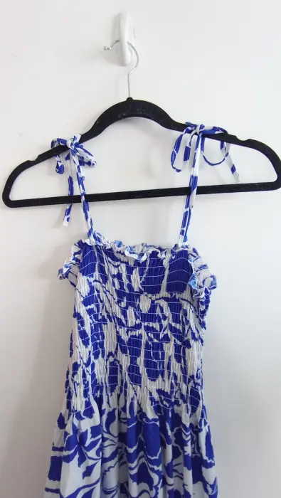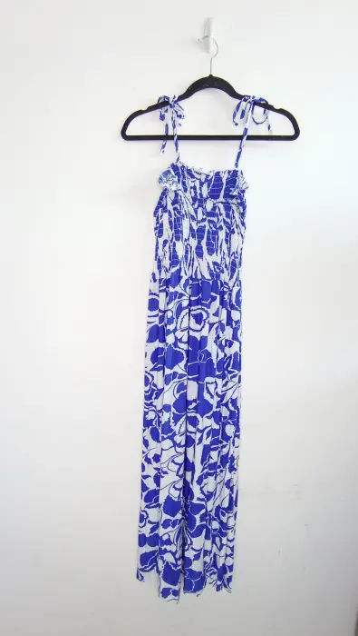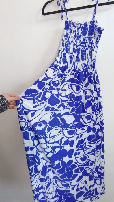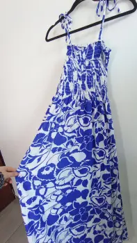 Vestido con tirantes que se amarran, es drapeado en la parte de arriba y la tela es muy fresca. Marca Darong, unitalla (S,M,L) mide 120cm en total de largo. Precio $150, nuevo con etiqueta