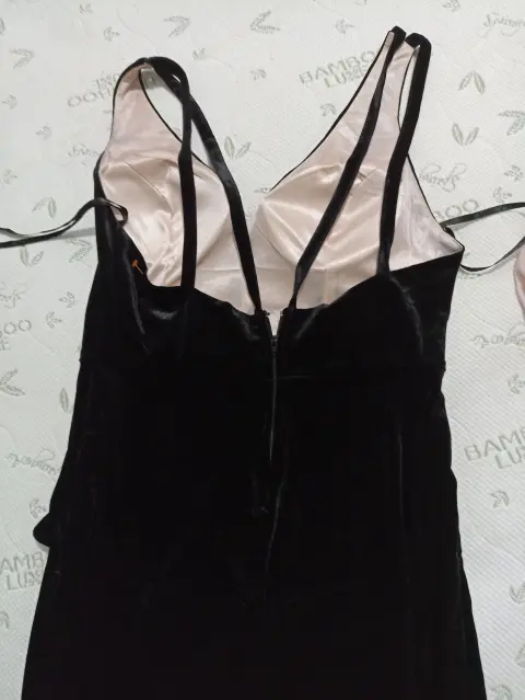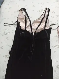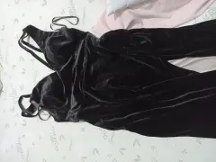 Vestido negro exelente para una fiesta de noche, con abertura en la pierna y escote bajo en la espalda, tela suelta y de terciopelo, forro no transparenta nada, talla L.
