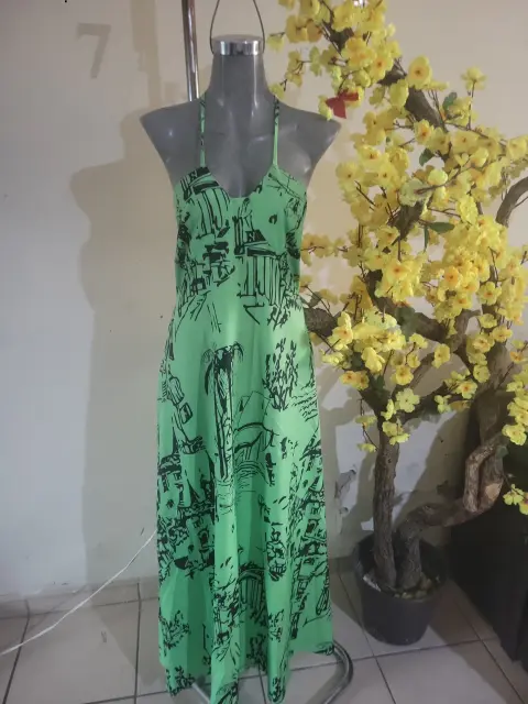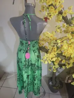 Vestida largo color verde Talla mediana configuras negras listo para usarse nuevo sin detalles