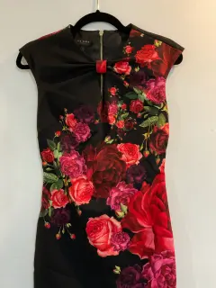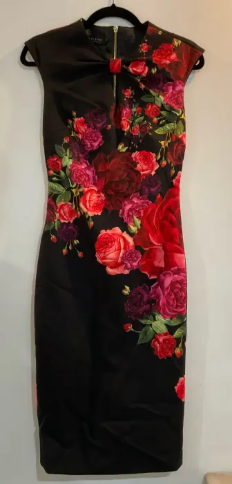 Vestido empresarial. Vestido largo con bellos estampados de rosas hermosas que dan un toque femenino y muy elegante .