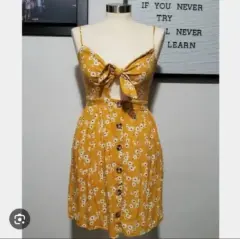 Un vestido hermoso de una tela muy fresca, en talla L, nuevo con etiqueta, se amarra al frente en el busto, la parte de atrás estira porque es elástica y tiene bolsas.La última foto ea como referencia de como se vería puesto.