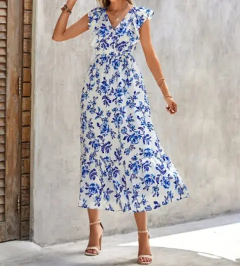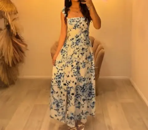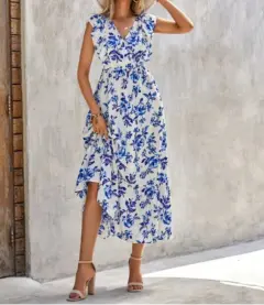 Vestido floral azul con blanco. Esta nuevo Medidas: Busto 86 cm Cintura 75 cm Largo 127 cm