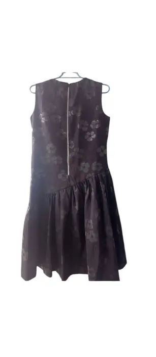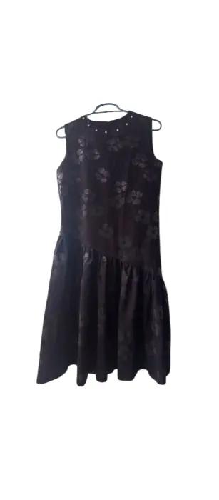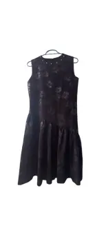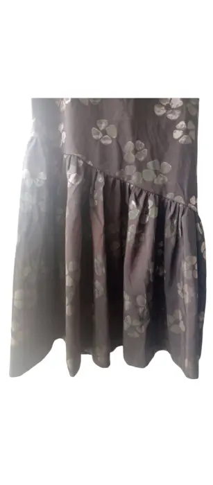 Vestido formal floreado. Vestido color negro formal con volante , diseño de flores y zipper de brillo tornasol
