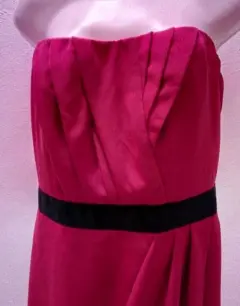 Vestido fucsia The Limited. Vestido strapless en color fiucsa, escote drapeado, cintillo negro debajo del busto, caída con pliegues, cierre lateralTalla 6 con las siguientes medidas33 cms ancho axila36.5 cms donde viene el cintillo negro75 cms largo total, medido desde la parte de enfrentePRENDA EN EXCELENTES CONDICIONES, YA QUE SÓLO TUVO UNA PUESTA