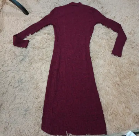 VESTIDO MARCA FASHION NOVA, TALLA XS ,ESCOTE AL FRENTE,FOTO 2 Y 4 COLOR JASPEADO VINO, SIN DETALLES, MANGA LARGA, MIDE DE HOMBRO A HOMBRO 33 CM, DE AXILA A AXILA 41 CM, CINTURA 60 CM,DE LARGO 93.5 CM