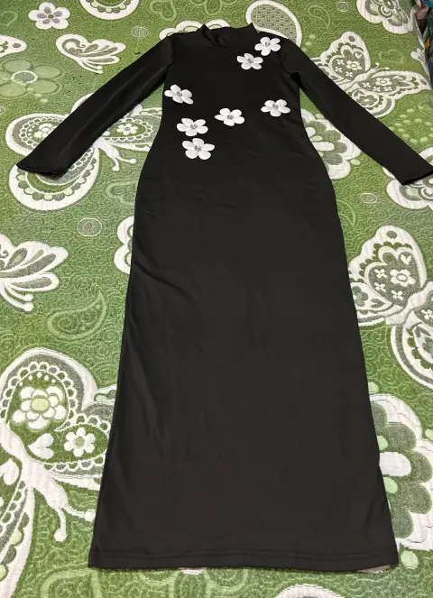 Vestido largo con aplicación de flores. Vestido largo con aplicaciones de flores Elegante Se ajusta al cuerpo Talla XS Nuevo !