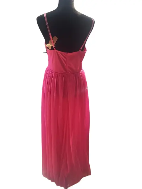 VESTIDO LARGO DE FIESTA, COLOR FIUSHA, MARCA HAUTE MONDE, TALLA M, DE HOMBRO A HOMBRO 38 CM, DE AXILA A AXILA 39 CM, DE LARGO 141 CM, CON MESH EN ESCOTE DE FRENTE