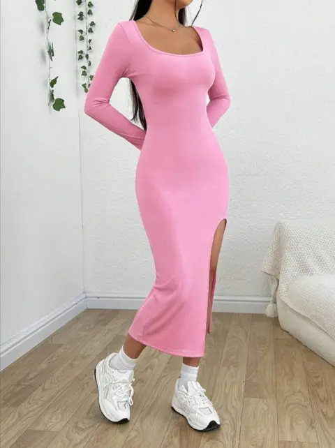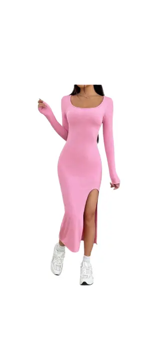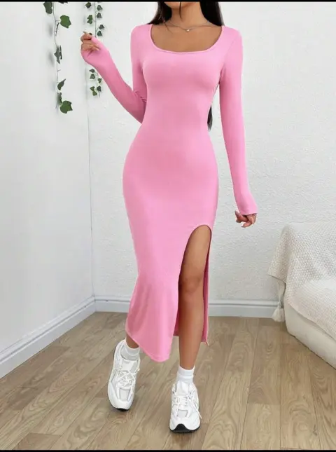 VESTIDO LARGO CASUAL, COLOR ROSA, MARCA ISSACHAR, UNITALLA ( HASTA XL) DE HOMBRO A HOMBRO 36.5 CM, DE AXILA A AXILA 41 CM, DE LARGO 110.5 CM, LADO MAS CORTO 75 CM CON