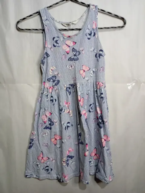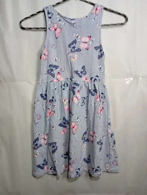Hermoso vestido azul de rayas diseño de mariposas marca H&M para niñas de 6-7 años en excelentes condiciones. Arma tus paquetes de nuestra variedad de prendas, pregunta por nuestros descuentos.