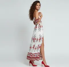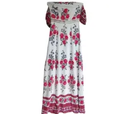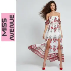 Vestido maxi MISS AVENUE. Vestido maxi MISS AVENUE Talla M Vestido maxi largo floral, con abertura en forma de M, hombros descubiertos, cuenta con forro y cierre de cremallera en la espalda. Cinta antideslizante en pecho. Medidas tomadas por un solo lado: *Axila-Axila 39-43 cm *Cintura alta 34 cm *Cadera 50 cm *Largo desde axila 132 cm ⚜️ Por favor si vas a ofertar que sea solo porque tú compra será segura ⚜️