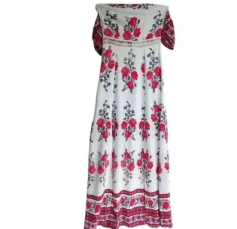 Vestido maxi MISS AVENUE Talla M Vestido maxi largo floral, con abertura en forma de M, hombros descubiertos, cuenta con forro y cierre de cremallera en la espalda. Cinta antideslizante en pecho. Medidas tomadas por un solo lado: *Axila-Axila 39-43 cm *Cintura alta 34 cm *Cadera 50 cm *Largo desde axila 132 cm ⚜️ Por favor si vas a ofertar que sea solo porque tú compra será segura ⚜️