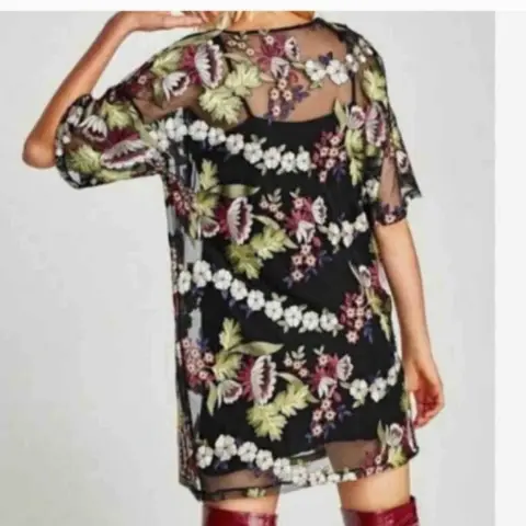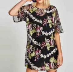 Vestido mesh zara. Hermoso vestido de mesh con flores bordadas, fresco, en tendencia queda desde XS a M