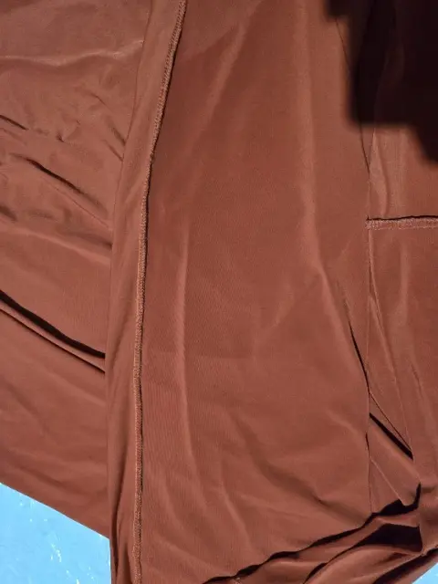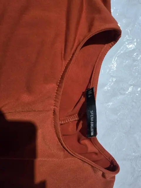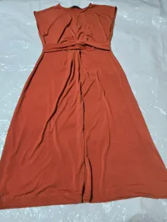 Vestido stretch color ladrillo, talla L Viene amplio da entre talla 34-36 mx, da al tobillo, no tiene detalles es nuevo sin etiqueta