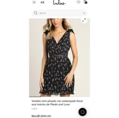 Vestido mini plisado LULUS. Vestido mini plisado LULUS Talla M Estampado floral azul marino. Tejido plisado de gasa, corpiño cruzado con detalles decorativos de lazo en los hombros. Una banda de crochet transparente en la cintura, cremallera oculto en el lateral Medidas tomadas por un solo lado: *Axila-Axila 44 cm *Cintura 38 cm *Largo 86 cm ⚜️ Por favor si vas a ofertar que sea solo porque tú compra será segura ⚜️