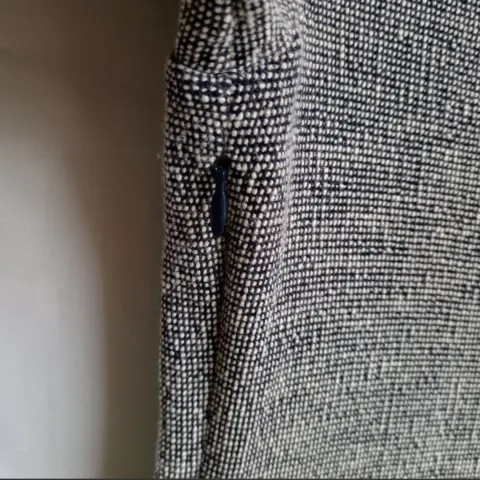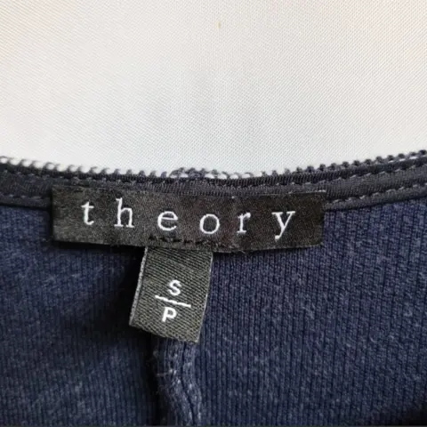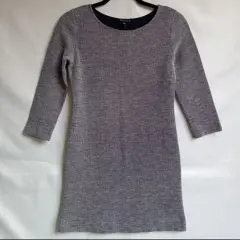 Vestido mini THEORY Mini vestido de punto Theory boucle, talla mediana. Patrón azul marino y blanco, mangas de tres cuartos de largo y cuello de barco, 100% algodón Talla S Medidas tomadas por un solo lado: *Hombros 33 cm *Axila-Axila 40 cm *Largo 78 cm