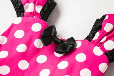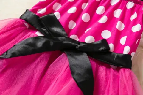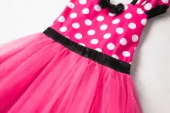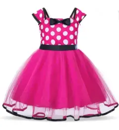 Vestido para niñaPersonaje: Minnie MouseColor: FusciaTallas: 1Largo: abajo de la rodilla Material: poliéster, algodón, gaza