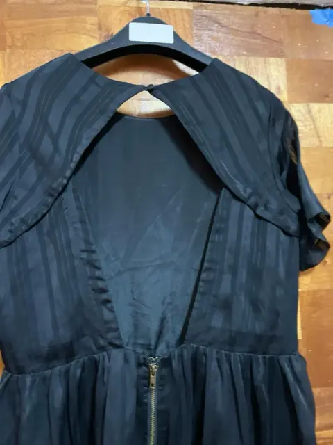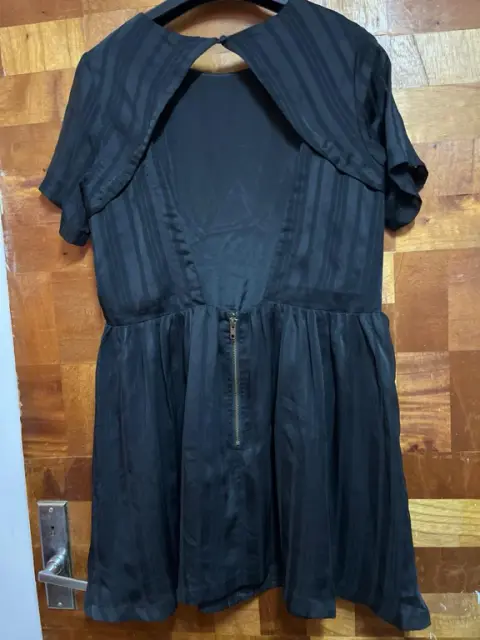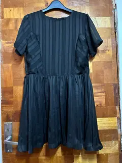 Vestido tipo cocktail color negro, mangas cortas, con forro, escote en la parte trasera, cierre y botón, esta muy muy hermoso. 49cm de axila a axila 43cm de cadera 86cm de largo