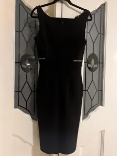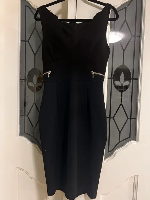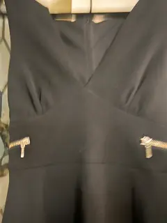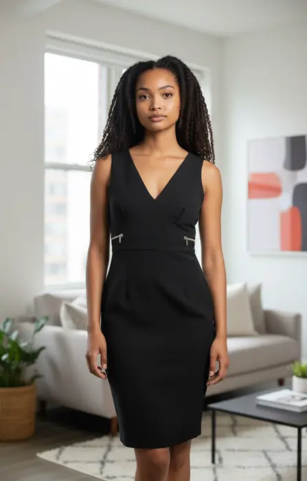 Vestido Negro Elegante que Impone. Impresiona con este vestido negro de corte lápiz, escote en V y detalles metálicos que realzan la silueta. Su diseño moderno y sofisticado es ideal para oficina, eventos o una salida especial. Ajusta perfecto, estiliza y te hace ver poderosa y femenina.¡Revisa mi clóset y arma tu paquete ahorrando en envío y con su respectivo descuento!